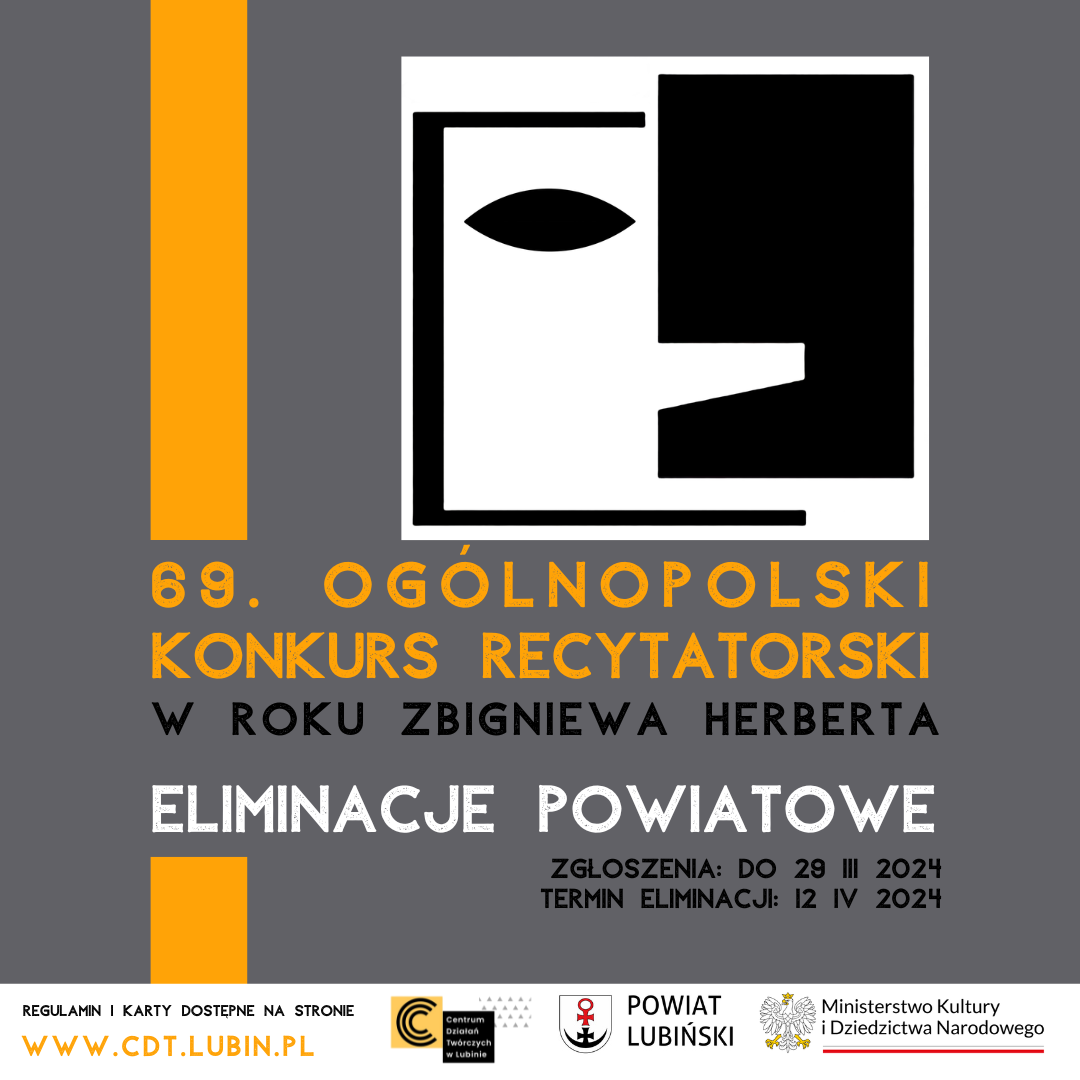 Centrum Działań Twórczych w Lubinie serdecznie zaprasza uczniów szkół ponadpodstawowych, studentów oraz dorosłych do udziału w 69. edycji Ogólnopolskiego Konkursu Recytatorskiego.
