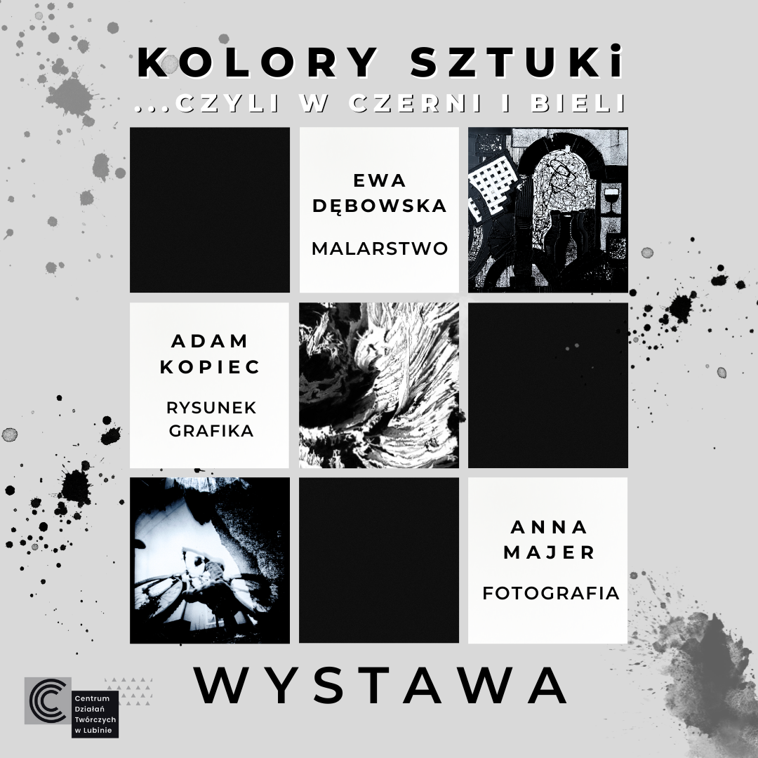 Zapraszamy na wyjątkową wystawę trzech artystów: Anny Majer, Ewy Dębowskiej i Adama Kopca pt. „Kolory sztuki… czyli w czerni i bieli”.