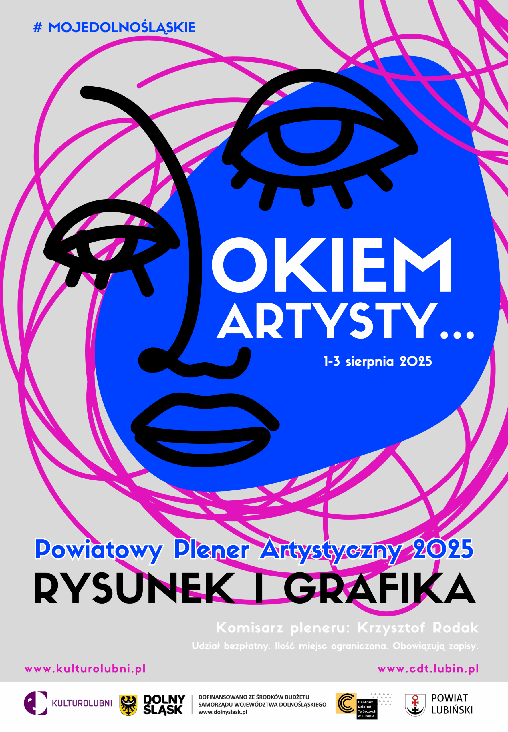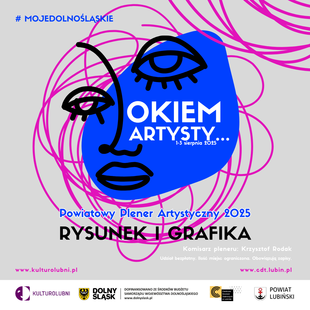 Po fotograficznej edycji pleneru z 2024 roku  i akwarelowej z 2023 roku, projekt „Okiem Artysty… Powiatowe Plenery Artystyczne” powraca w nowej formule. Tym razem tematem przewodnim będzie rysunek i grafika, a twórcze działania skupią się na terenie Lubina. Plener odbędzie się w dniach 1–3 sierpnia 2025 roku i będzie kolejnym krokiem w trzyletnim cyklu wspierającym artystów-amatorów z regionu.