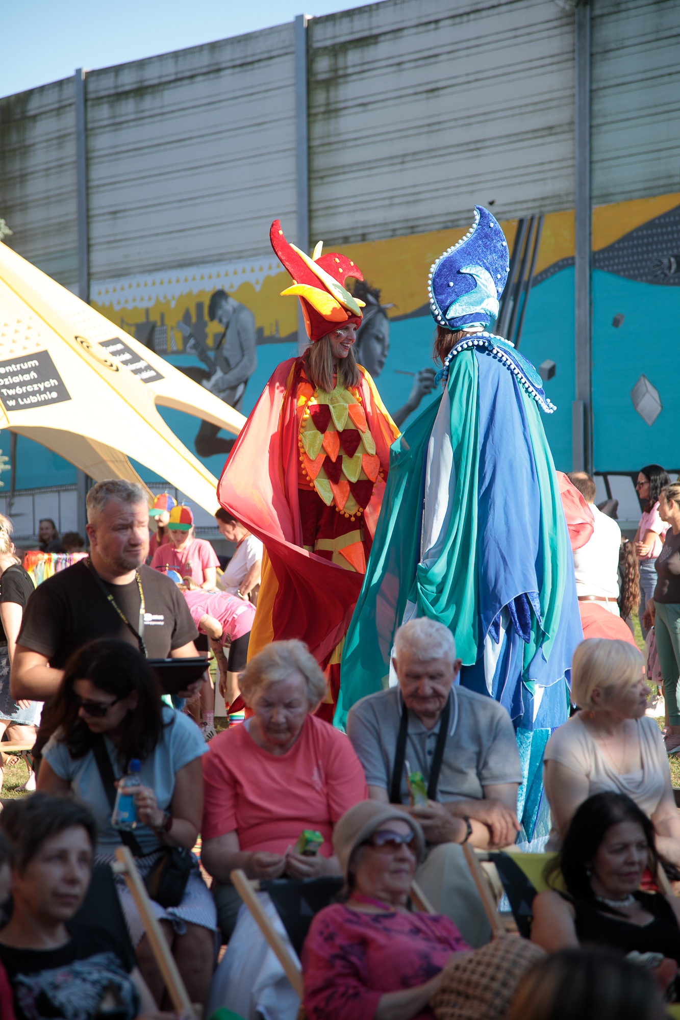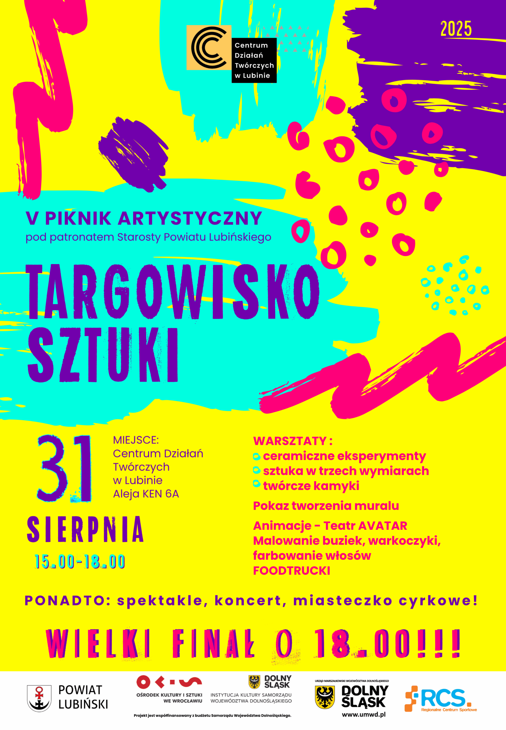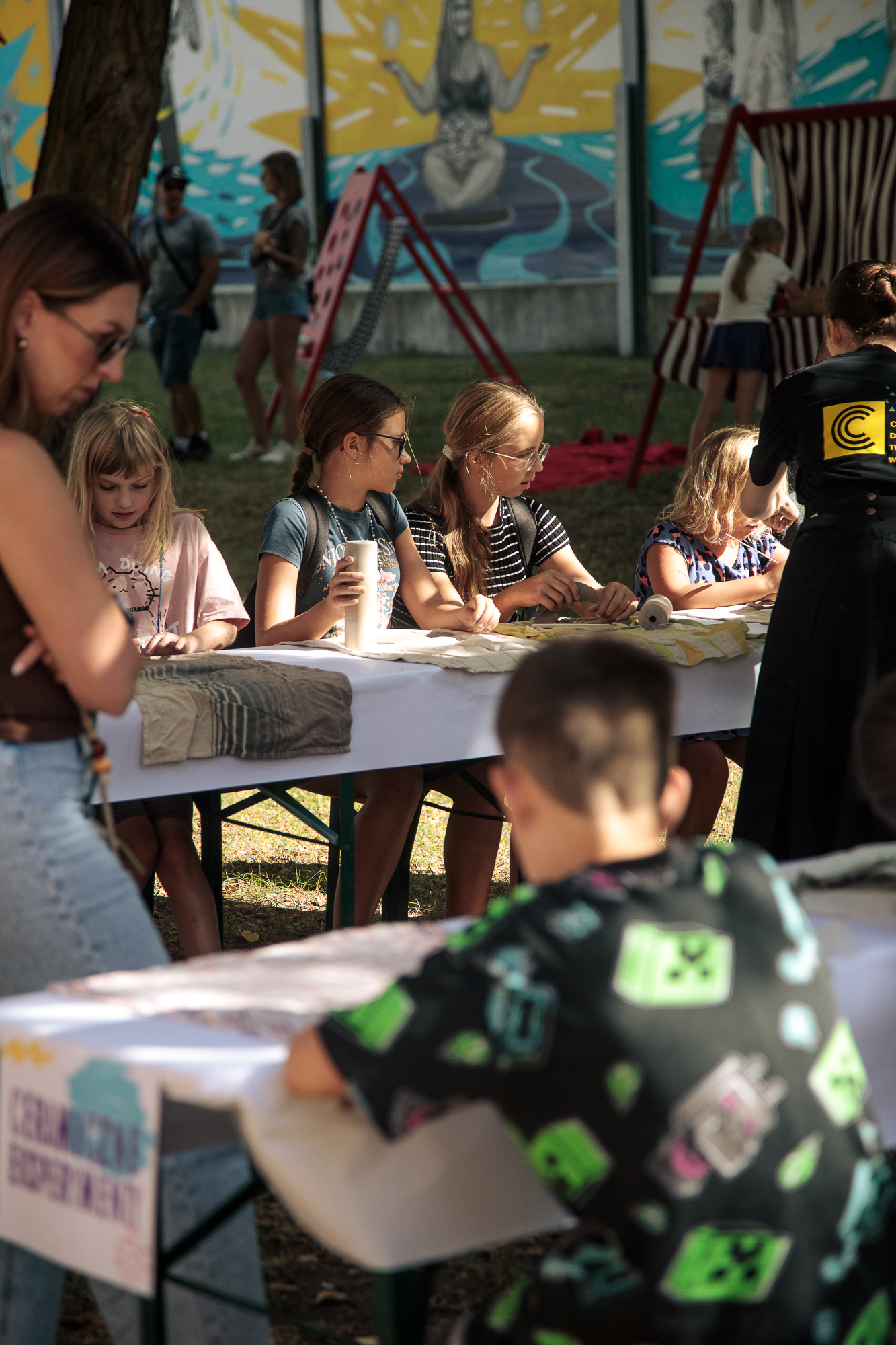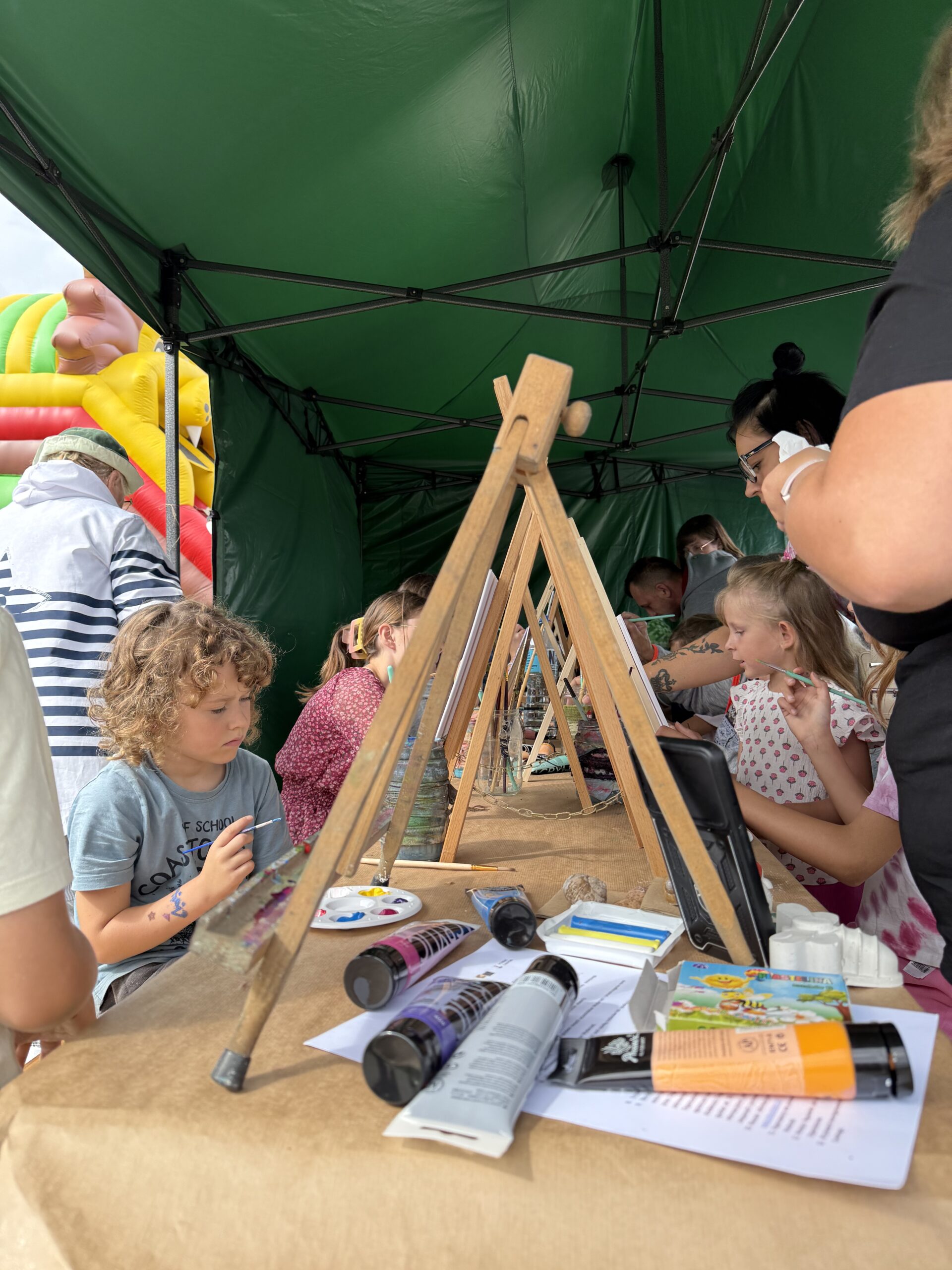 Kolorowe stoiska, warsztaty, animacje i działania plenerowe od pierwszych chwil wciągnęły zarówno dzieci, jak i dorosłych. W strefie artystycznej i cyrkowej powstawały ceramiczne eksperymenty, rzeźby w trzech wymiarach i fantazyjnie zdobione kamyki. Na oczach publiczności rodził się mural, a artyści z Teatru AVATAR i FRIKART porwali uczestników do wspólnej zabawy. Ogromnym zainteresowaniem cieszyły się także przemiany w kolorze – od malowania buziek i warkoczyków, po barwne tatuaże, dzięki którym każdy mógł poczuć się częścią tego artystycznego święta.