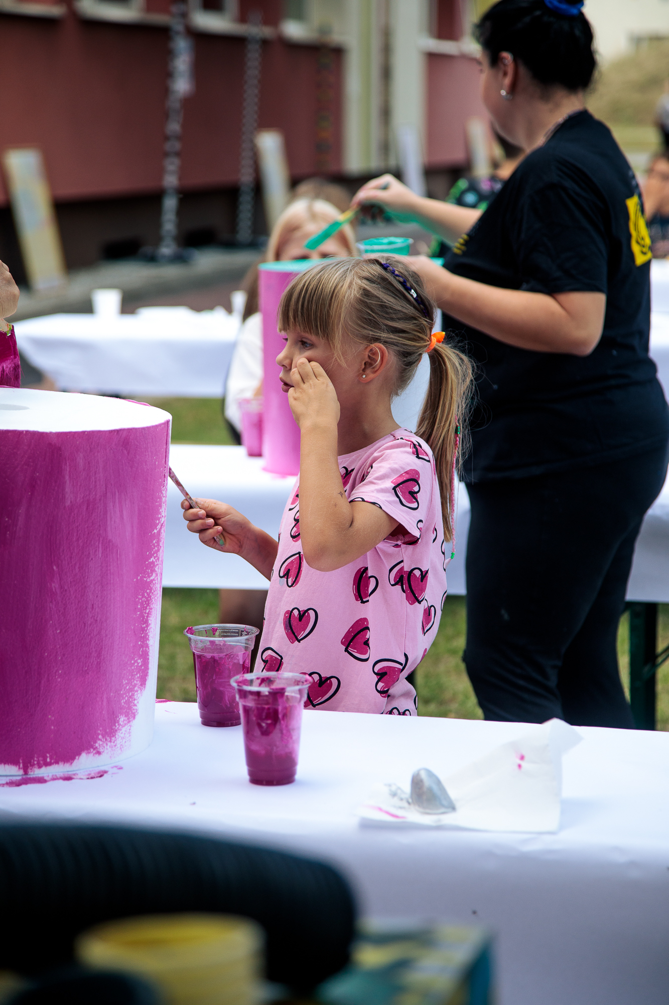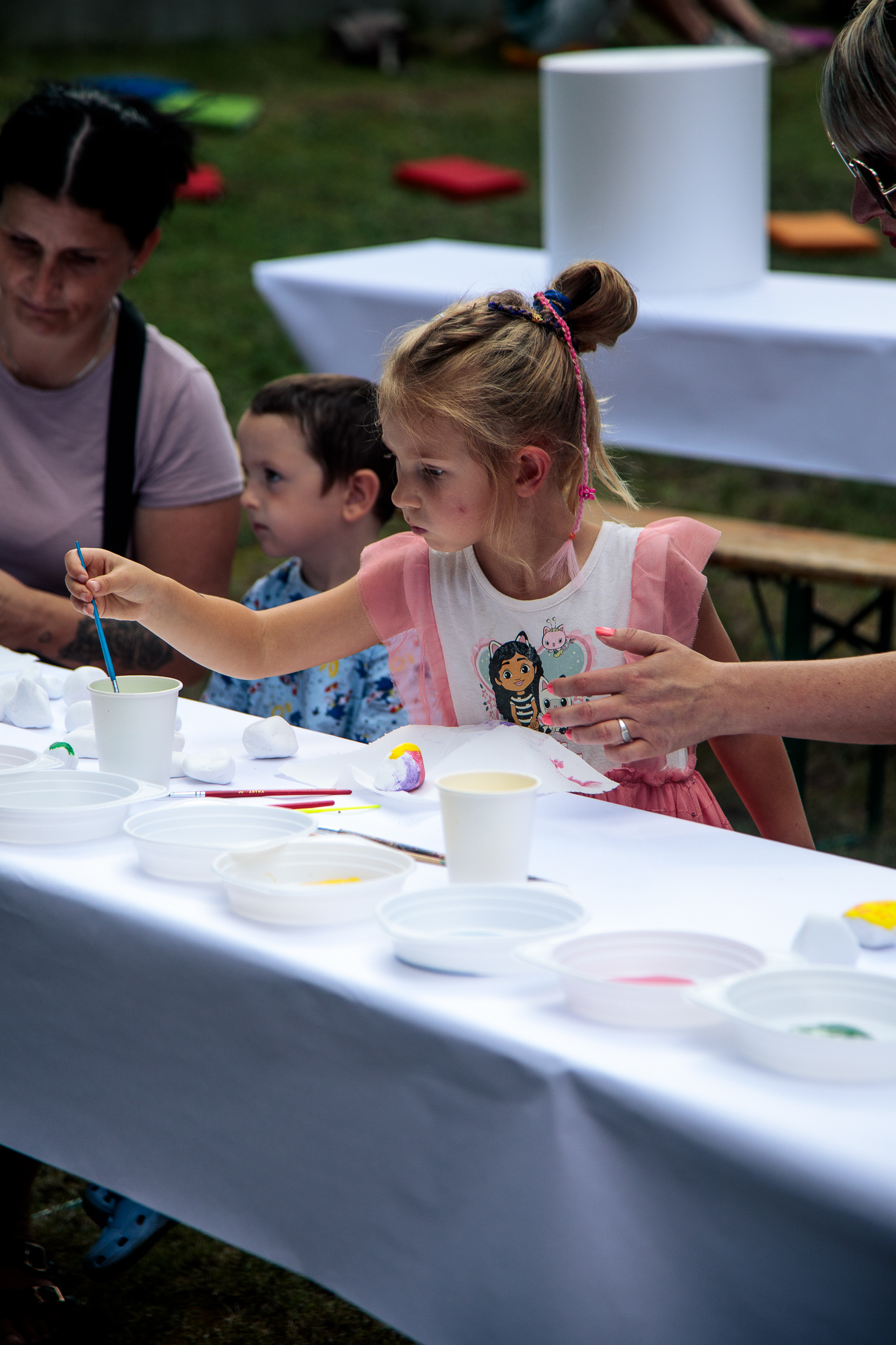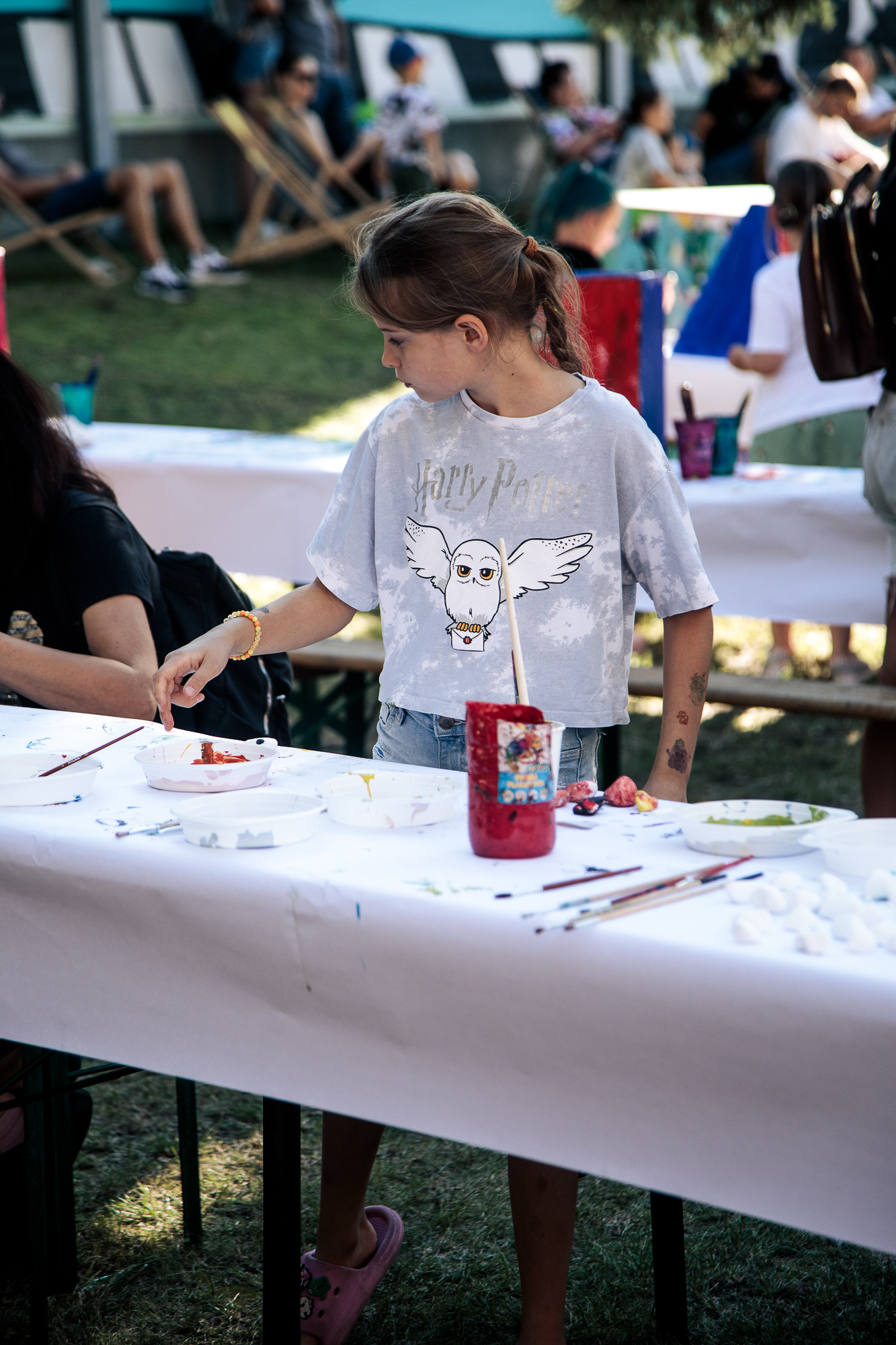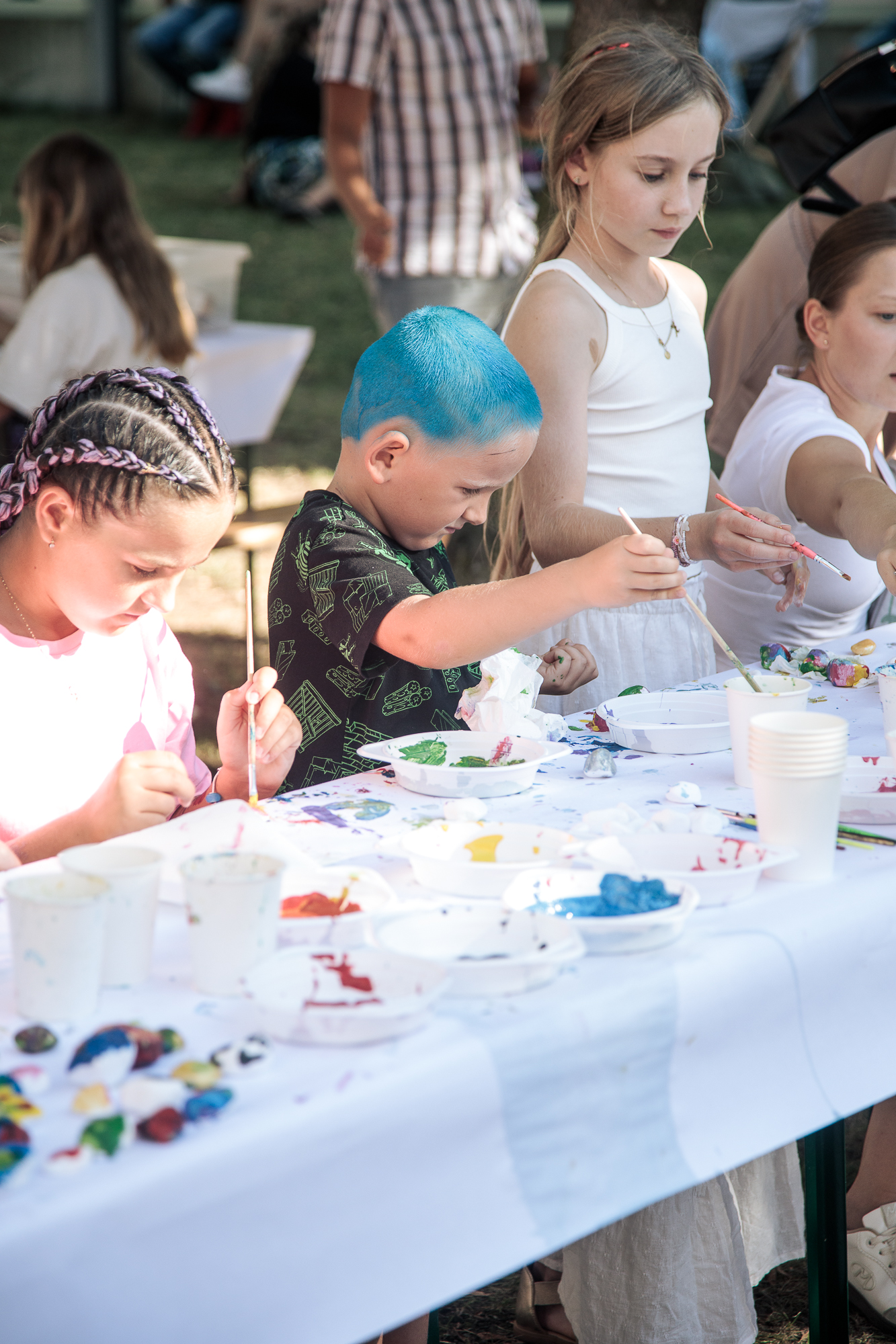Kolorowe stoiska, warsztaty, animacje i działania plenerowe od pierwszych chwil wciągnęły zarówno dzieci, jak i dorosłych. W strefie artystycznej i cyrkowej powstawały ceramiczne eksperymenty, rzeźby w trzech wymiarach i fantazyjnie zdobione kamyki. Na oczach publiczności rodził się mural, a artyści z Teatru AVATAR i FRIKART porwali uczestników do wspólnej zabawy. Ogromnym zainteresowaniem cieszyły się także przemiany w kolorze – od malowania buziek i warkoczyków, po barwne tatuaże, dzięki którym każdy mógł poczuć się częścią tego artystycznego święta.