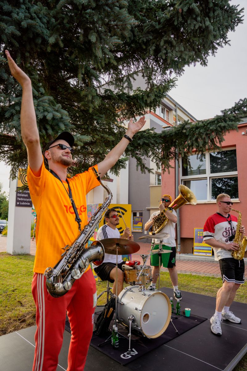 24 lipca o godz. 18:00 na zielonym terenie przy Centrum Działań Twórczych w Lubinie odbył się niezapomniany koncert zespołu Dirty Horns – prawdziwej muzycznej petardy prosto z krakowskiej sceny. Półfinaliści 12. edycji programu Must Be The Music porwali publiczność dynamicznym show, w którym połączyli energetyczne brzmienia brass bandu z jazzową subtelnością i popową przebojowością. Ich niezwykłe instrumentarium – saksofon altowy, saksofon tenorowy, suzafon i perkusja – stworzyło unikalne, pulsujące rytmem widowisko, które na długo zostanie w pamięci uczestników.