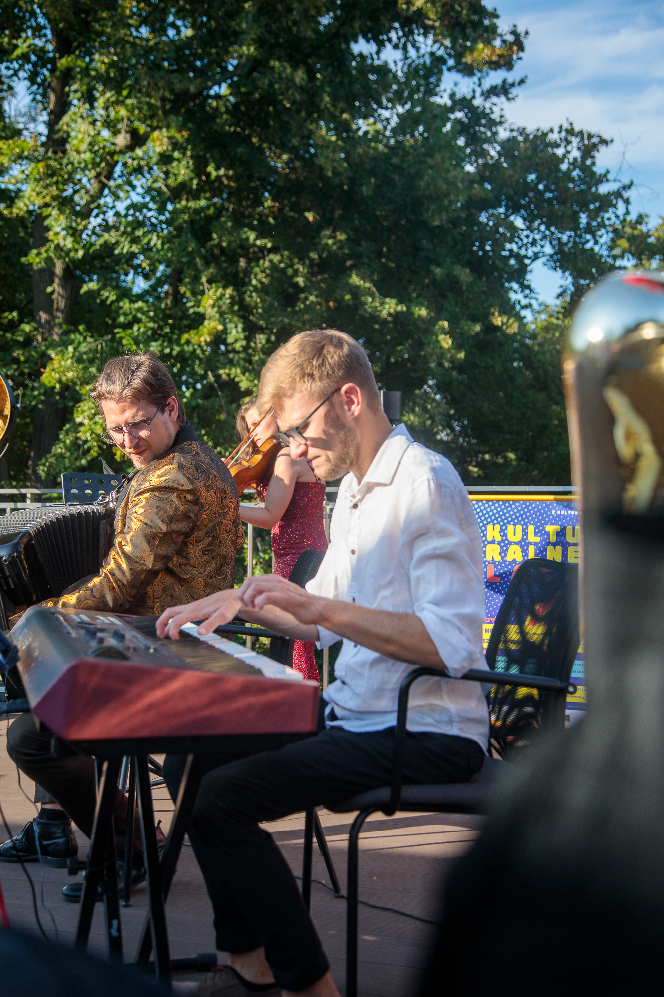To był wieczór pełen elegancji, pasji i muzycznych emocji. Mateusz Kwapień Trio – skrzypce, fortepian i akordeon – stworzyli wyjątkowe brzmienie, w którym tradycyjne tango spotkało się z lekkością i świeżością improwizacji.