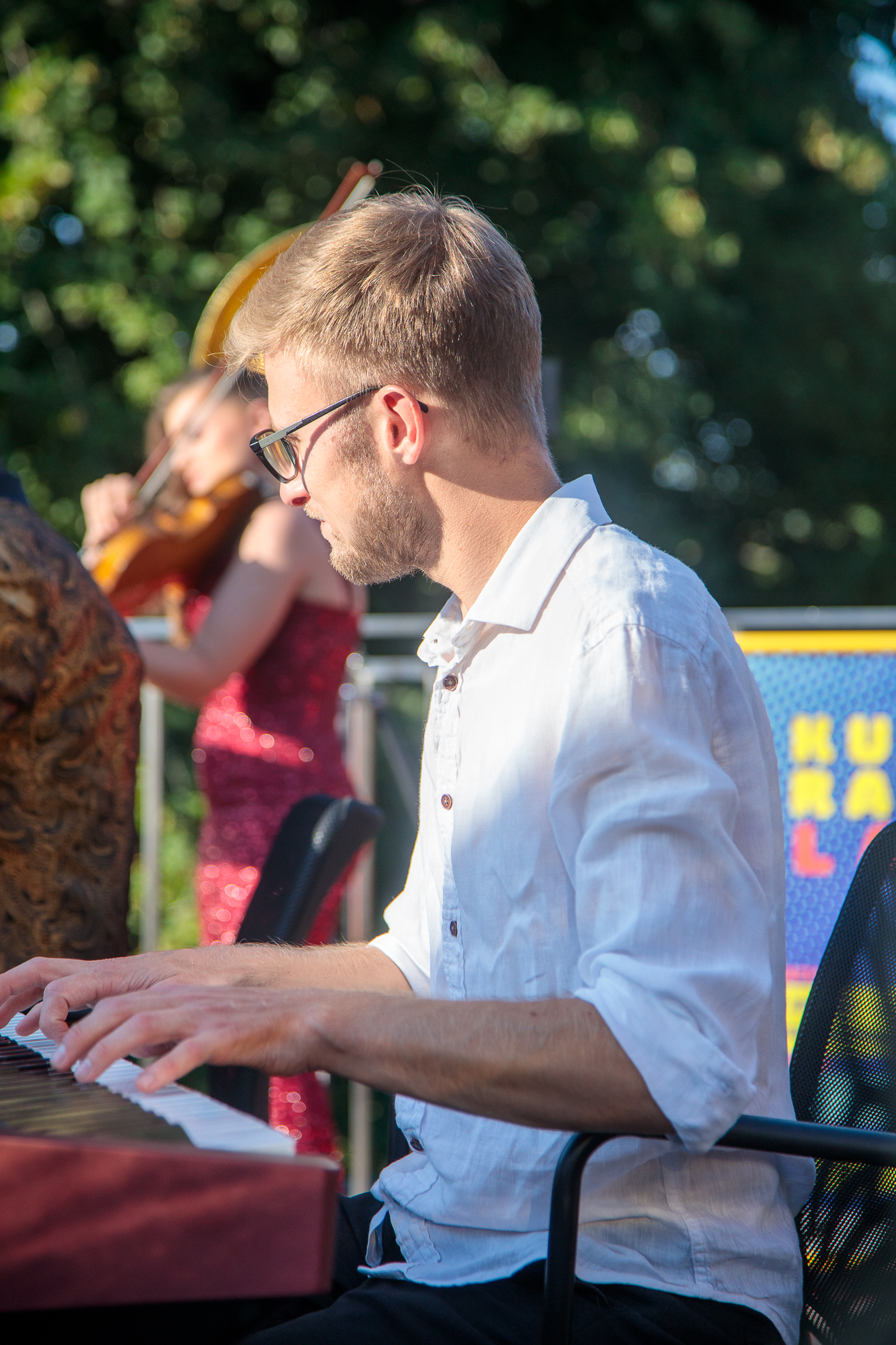 Publiczność mogła delektować się subtelnymi dźwiękami i klimatyczną atmosferą koncertu, który odbył się na dachu siedziby lubińskiego ZOO. Zieleń otaczała scenę, a muzyka płynęła wprost w koronach drzew, tworząc niezapomniany nastrój letniego wieczoru.
