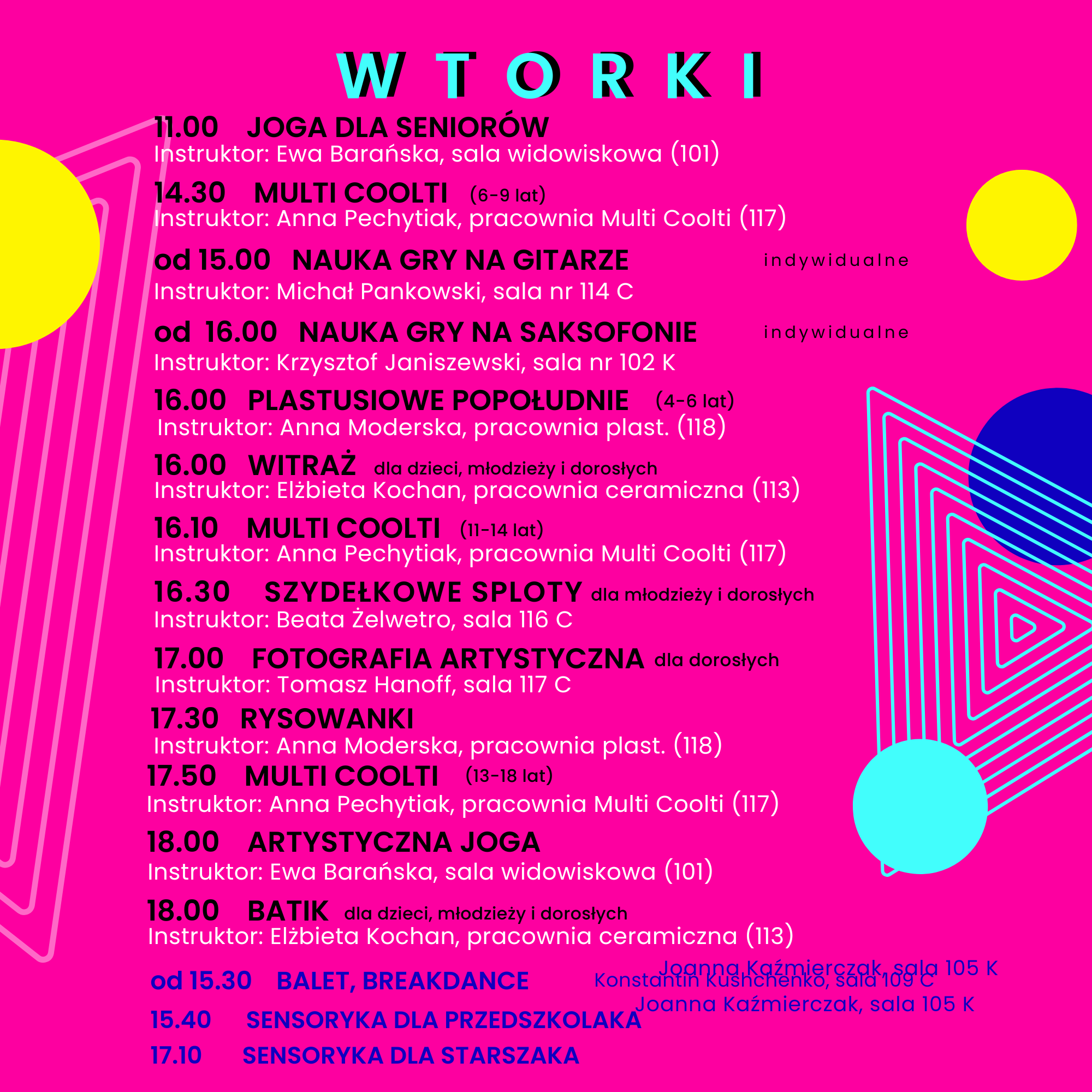 W tym roku przygotowaliśmy prawie 60 różnorodnych zajęć – od sensoryki dla maluchów od 9. miesiąca życia, przez kreatywne warsztaty dla dzieci i młodzieży, aż po aktywności dla dorosłych i seniorów, nawet tych 121+!