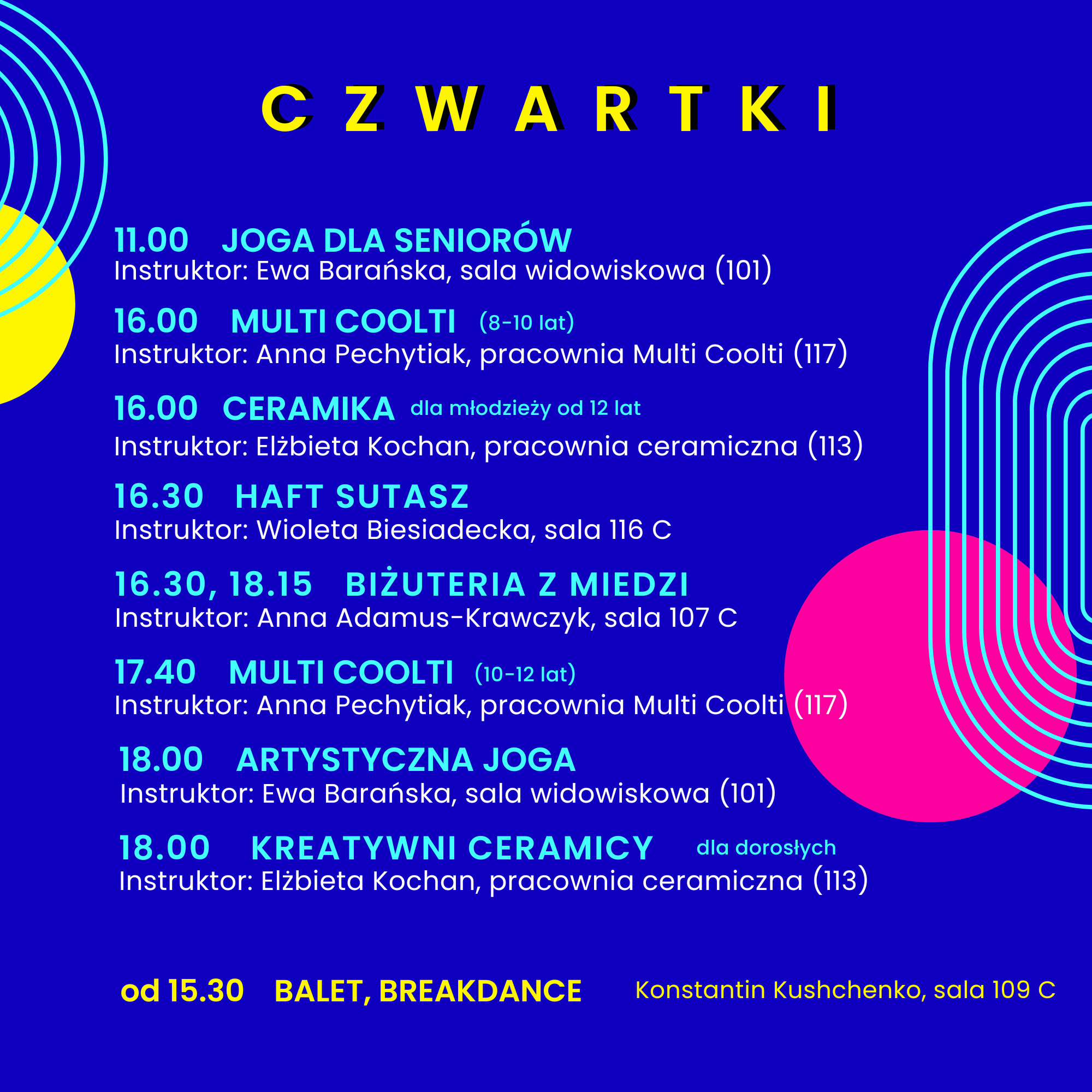 Wszystkie informacje w zakładce WARSZTATY albo pod linkami: