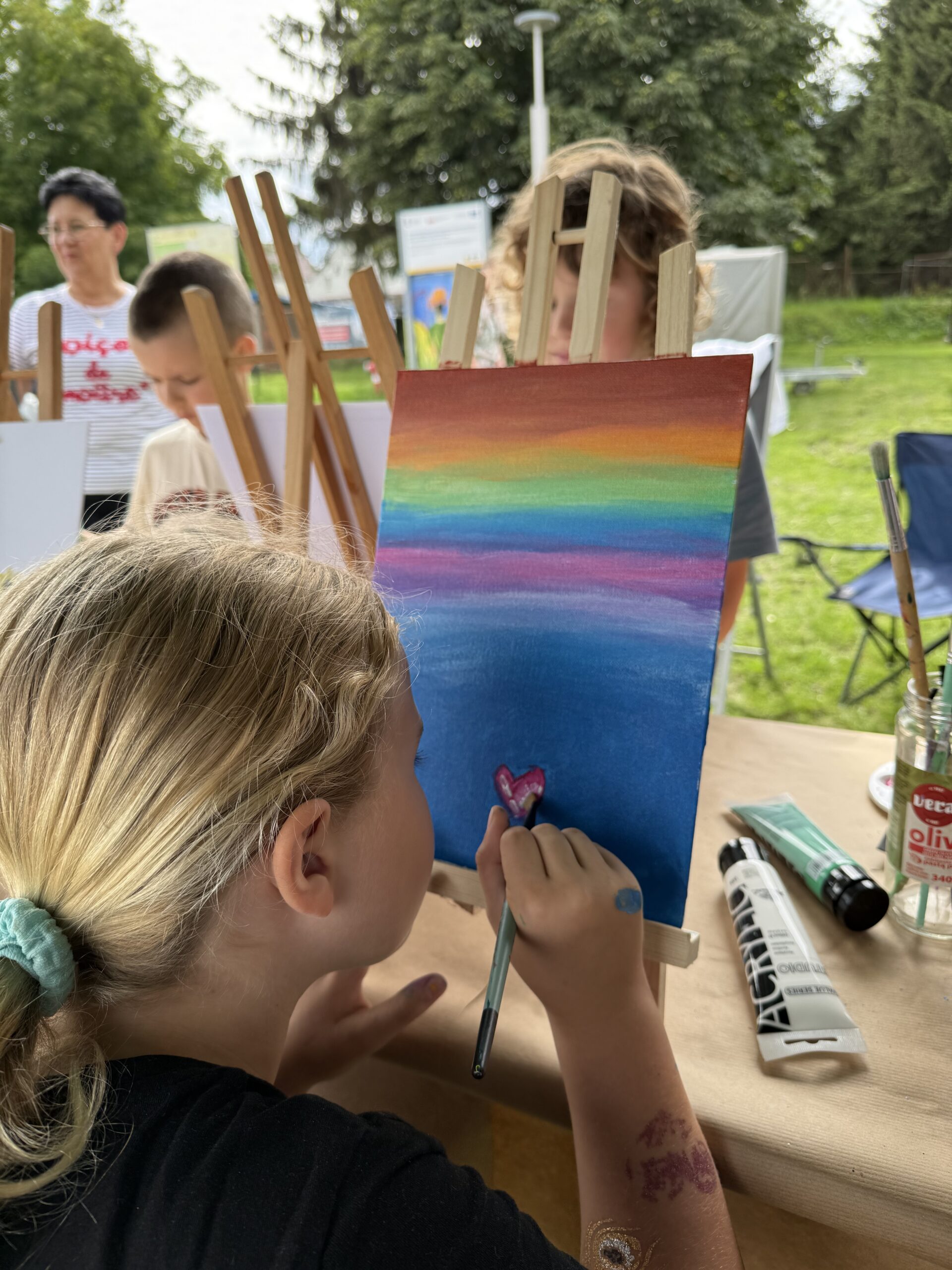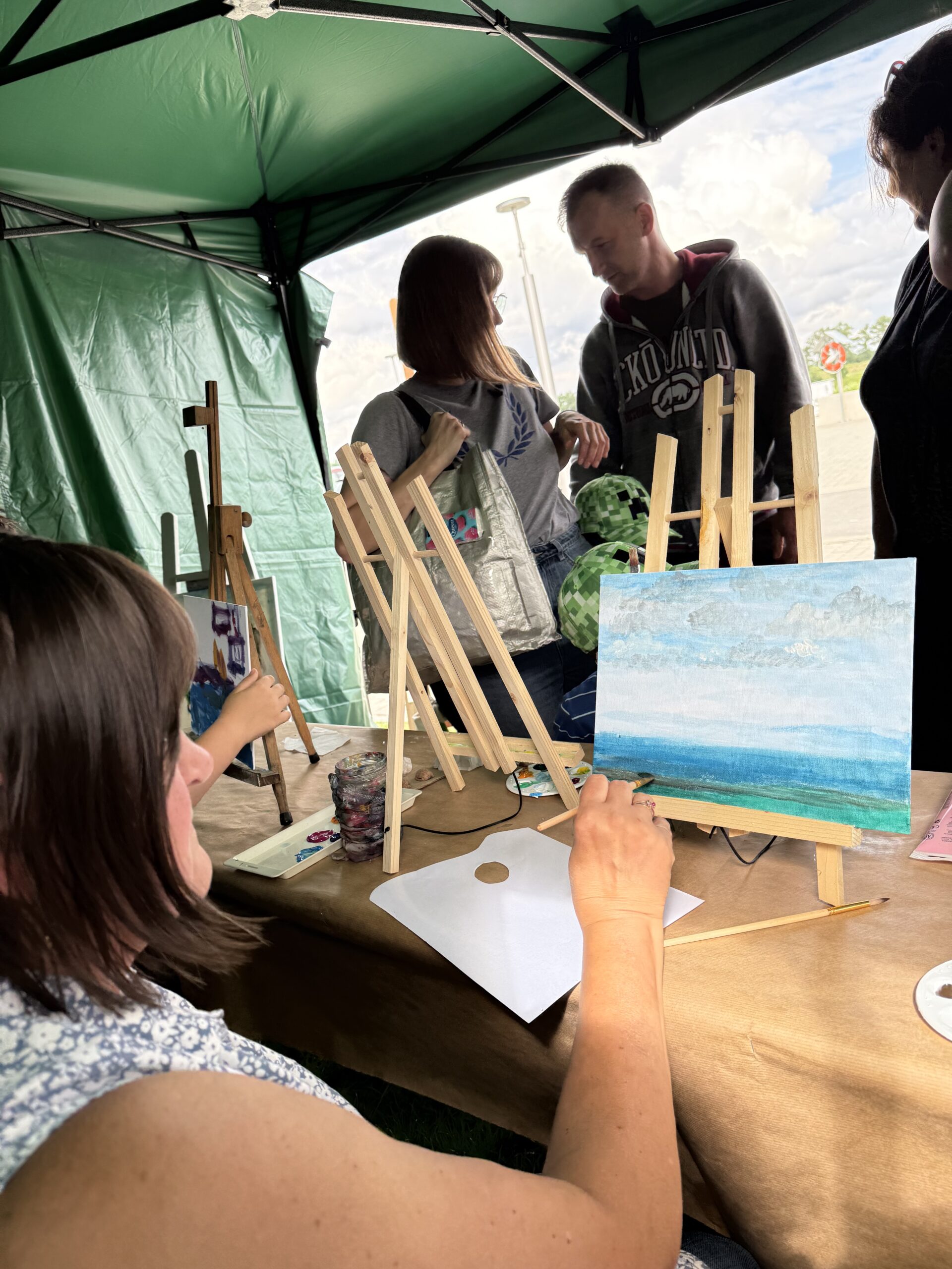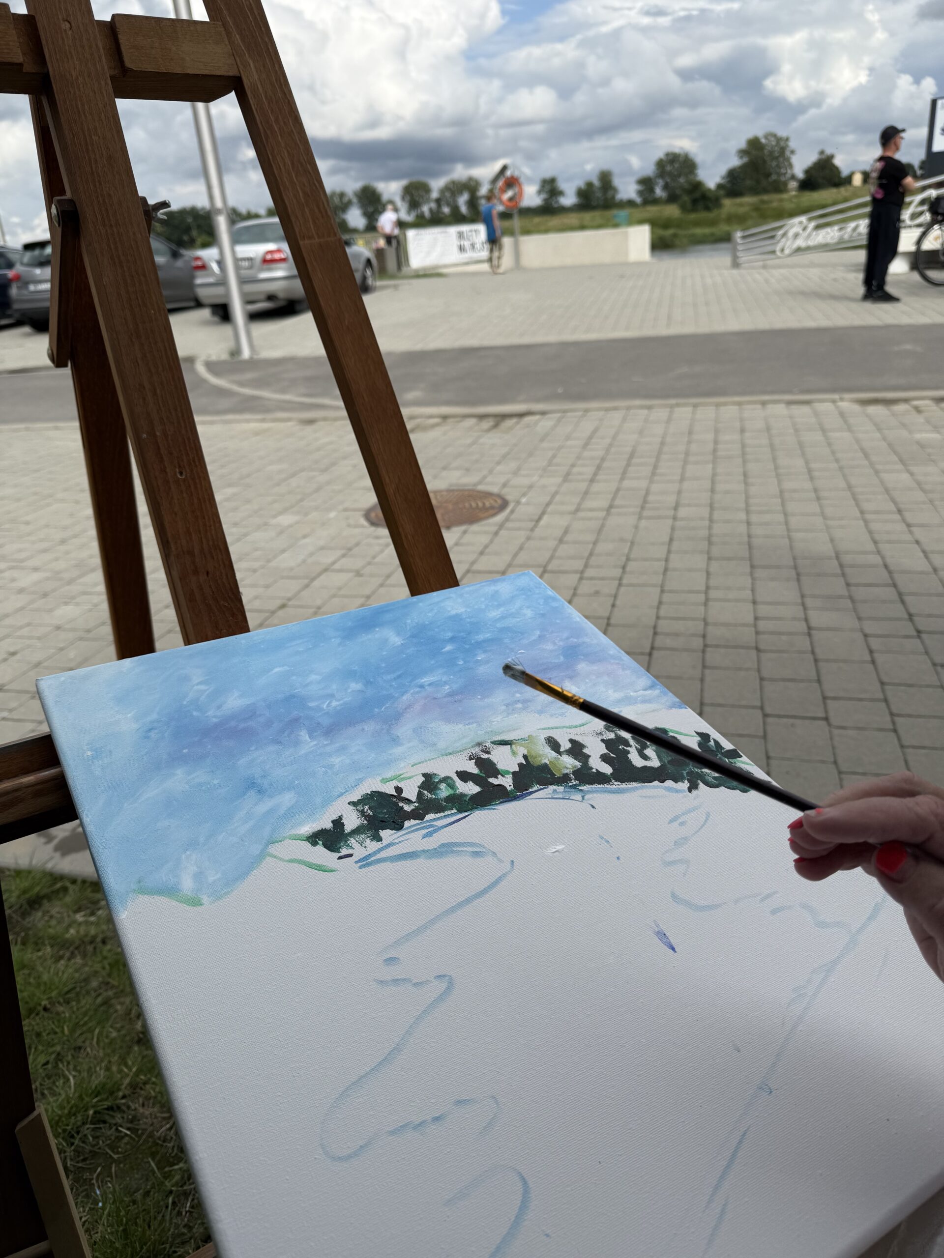 Wśród szumu rzeki i zieleni powstały obrazy inspirowane wodą, przyrodą i wakacyjną atmosferą. Nikt się nie spieszył – liczyła się dobra zabawa, twórczy relaks i radość tworzenia.