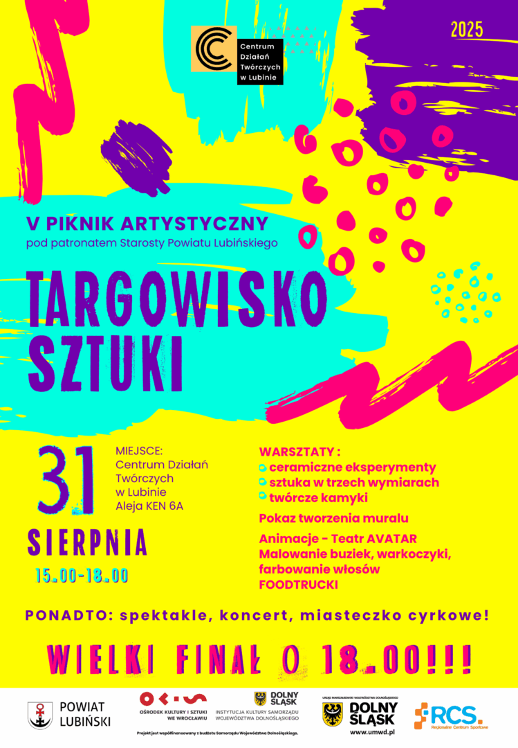 Ostatnia niedziela wakacji w Lubinie upłynęła pod znakiem sztuki, zabawy i niezwykłych spotkań. V Piknik Artystyczny „Targowisko Sztuki” po raz kolejny przyciągnął tłumy mieszkańców i zamienił teren przy Centrum Działań Twórczych w prawdziwe miasteczko kreatywności.