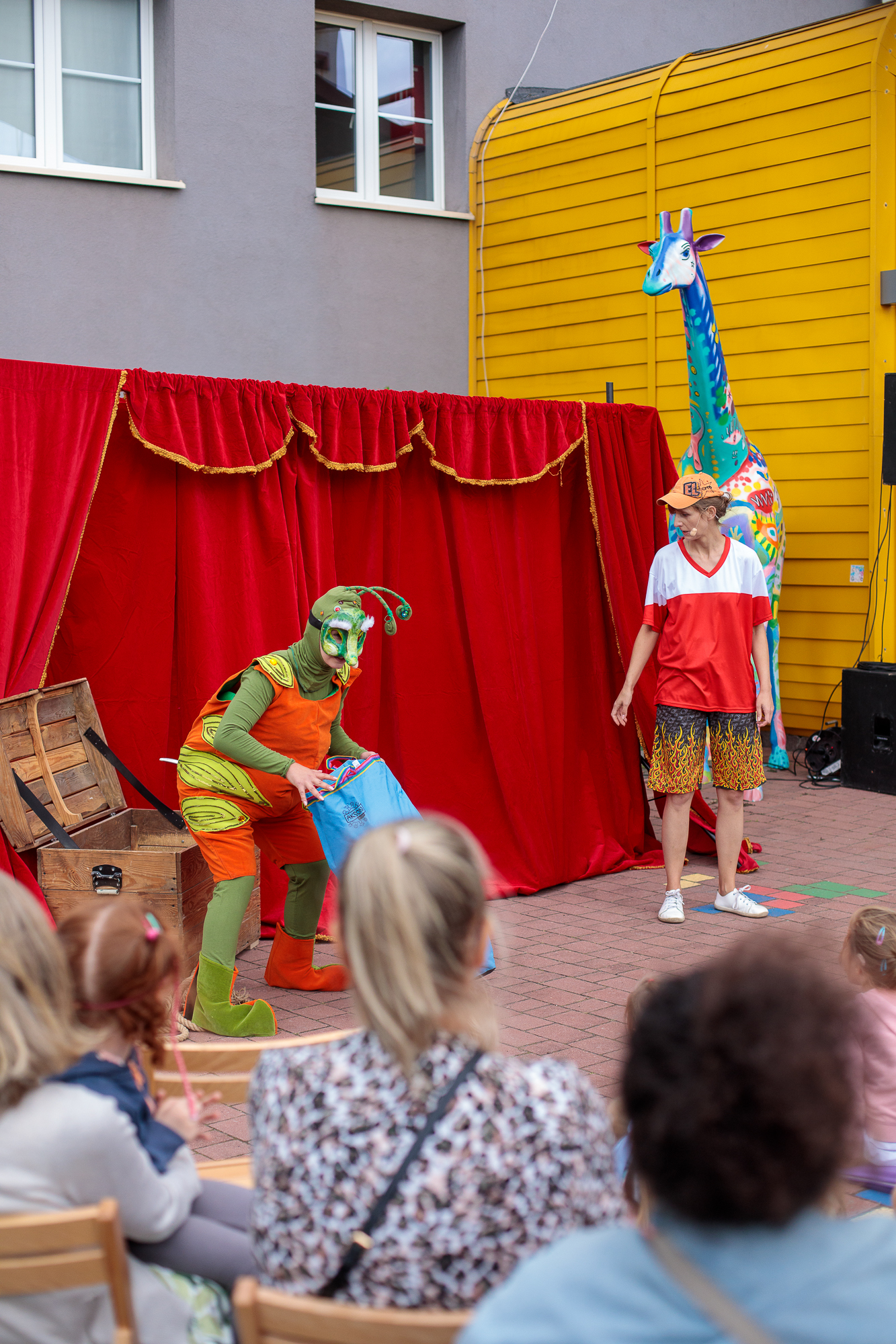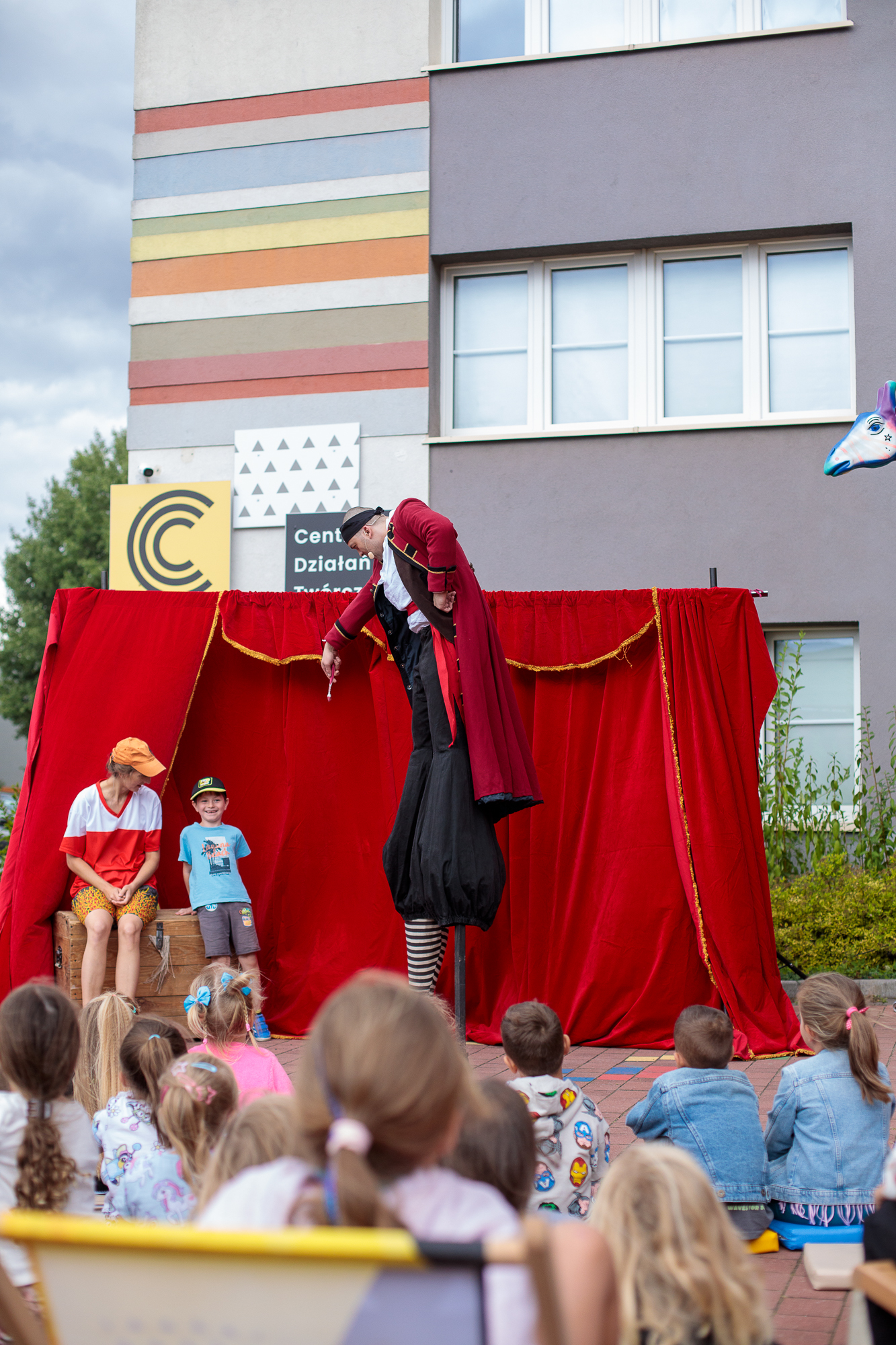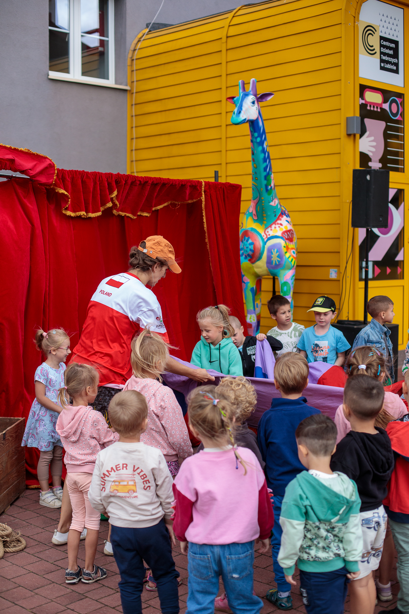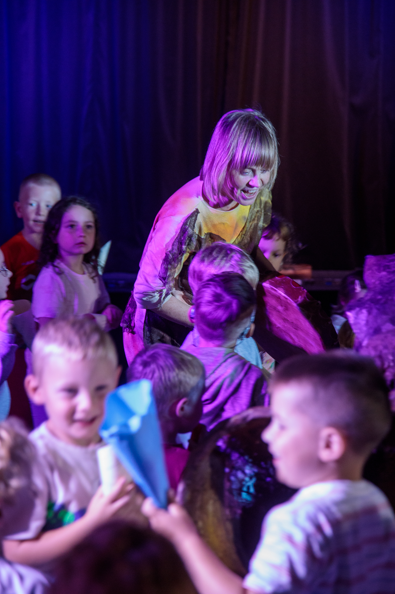Mimo że deszcz pokrzyżował plany i przedstawienie odbyło się w sali, było naprawdę super – publiczność bawiła się świetnie!
