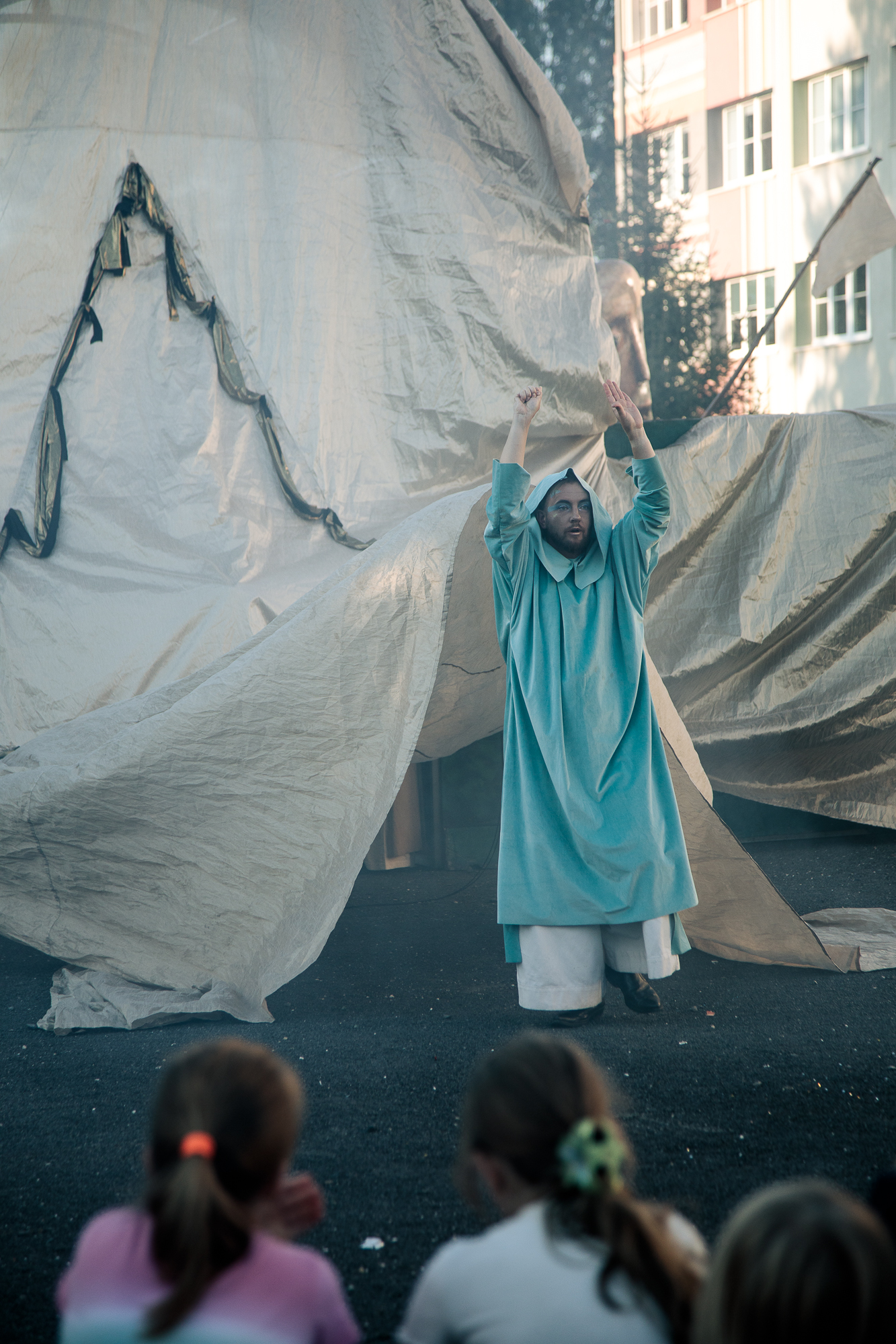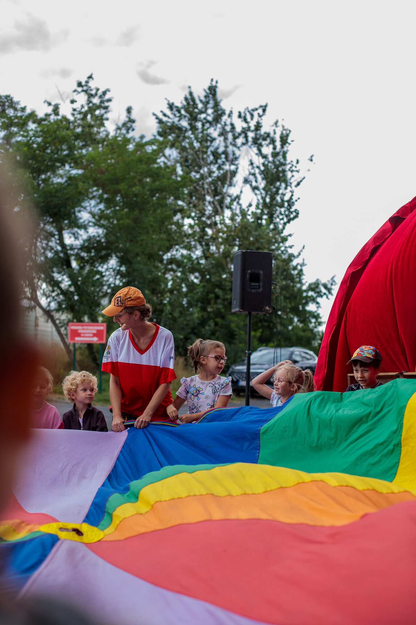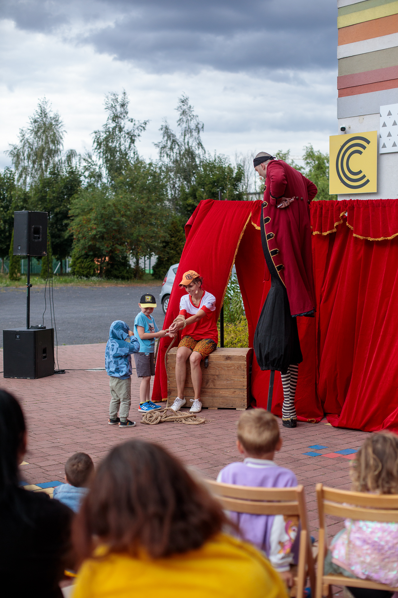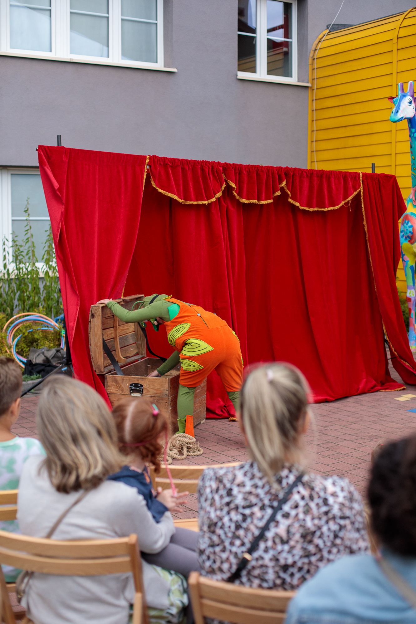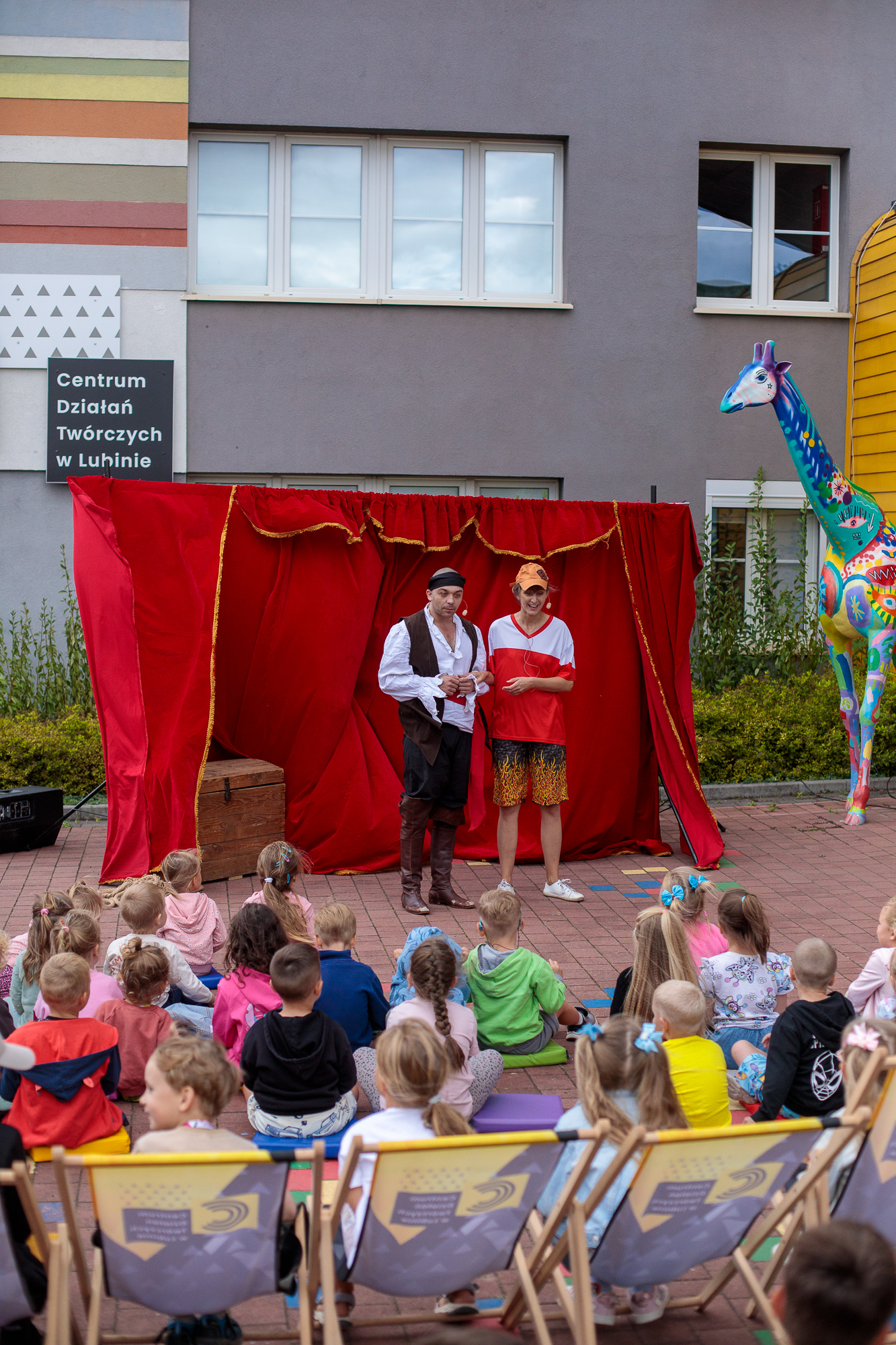 Mimo że deszcz pokrzyżował plany i przedstawienie odbyło się w sali, było naprawdę super – publiczność bawiła się świetnie!