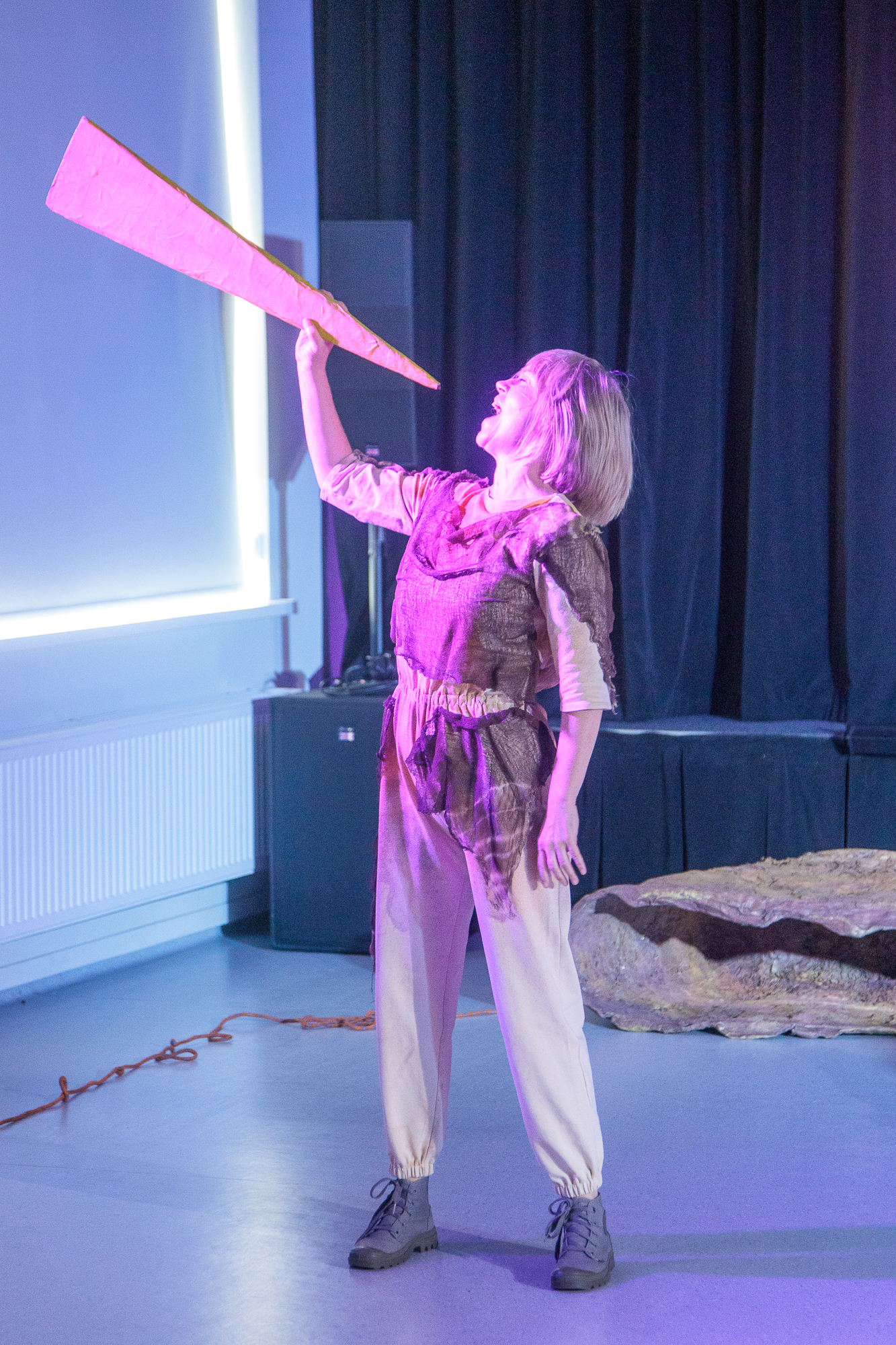 Na scenie zaprezentowali się uczestnicy warsztatów aktorskich dla młodzieży, działających przy CDT. Pod kierunkiem Mateusza Krzyka, aktora Teatru im. Heleny Modrzejewskiej w Legnicy, młodzi aktorzy przenieśli nas w przestrzeń pełną niepokoju, ciszy i pytań o sens ludzkiej egzystencji.